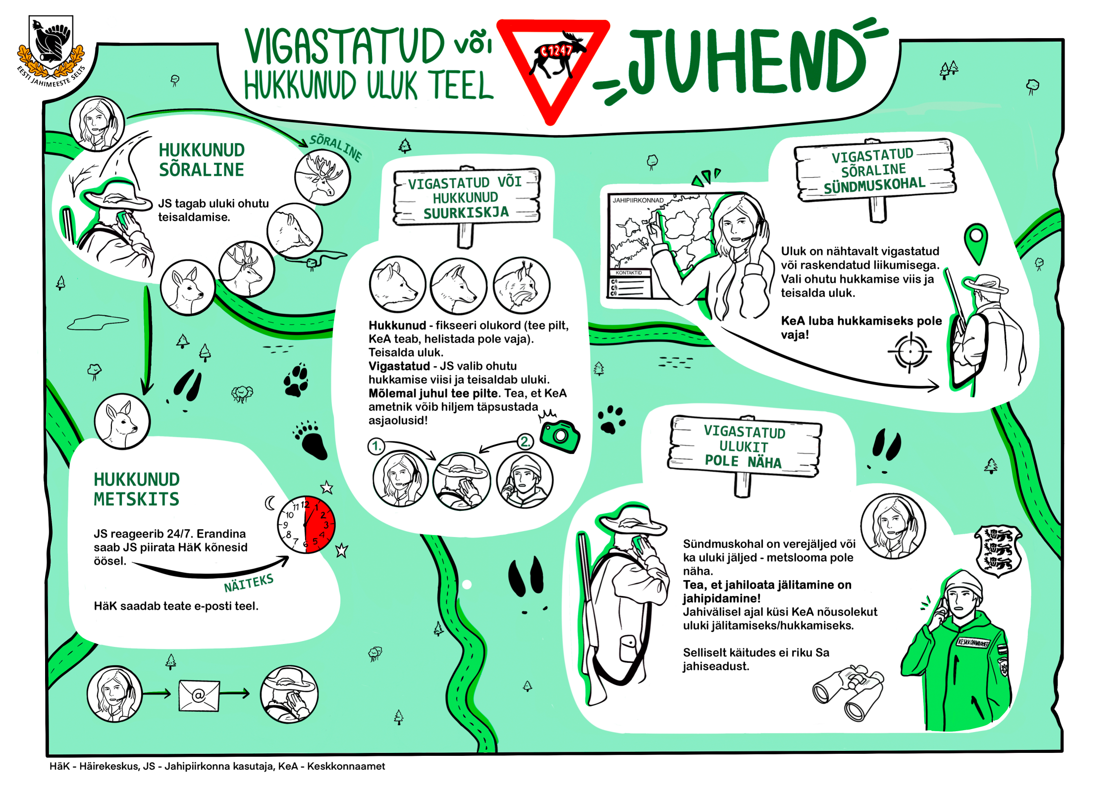 Kui suuruluk (põder, metssiga, hirv, metskits) jäi pärast kokkupõrget surnuna sõidutee osale, kus see võiks ohustada liiklust, suunab HäK* teavituse esmalt Päästeametile, kes likvideerib liiklusohtliku olukorra. Loom eemaldatakse teelt ohutusse kohta sündmuspaiga vahetus läheduses. Võimalusel metslooma asukoht märgistatakse, et see oleks jahimeeste poolt kergemini leitav.