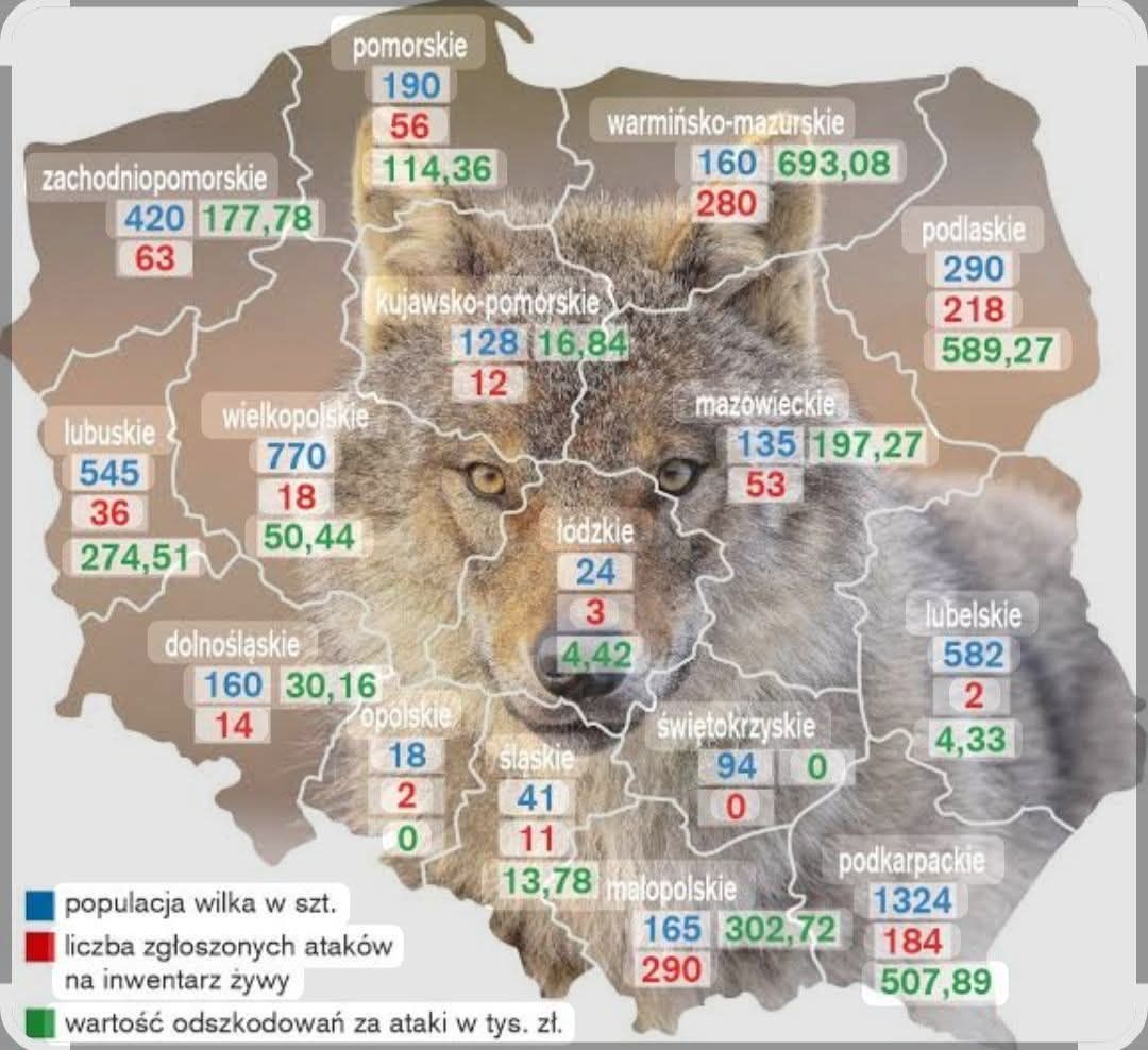 Mitmes Poola piirkonnas on viimastel aastatel registreeritud kariloomade vastu suunatud rünnakud sagenenud. Näiteks Żuławy Wiślane piirkonnas Markusy vallas on teatatud korduvatest juhtumitest, kus hundid on murdnud vasikaid ja lambaid asulate läheduses. Sarnaseid juhtumeid on registreeritud ka Alam-Sileesias, Podkarpacie piirkonnas ja Masoovias.