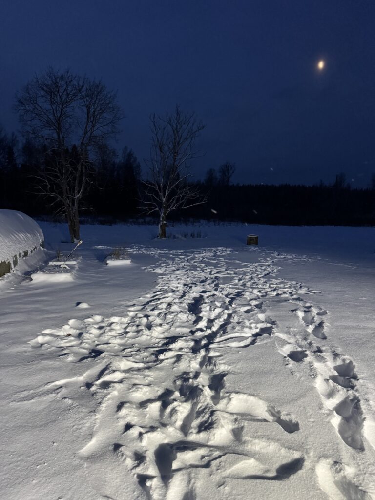 Kähu küla koduhoovis (pildil) sattus kollikoer Hugo hundi rünnaku ohvriks. Pildil on näha hundi- ja koera jälgi. Foto: erakogu
