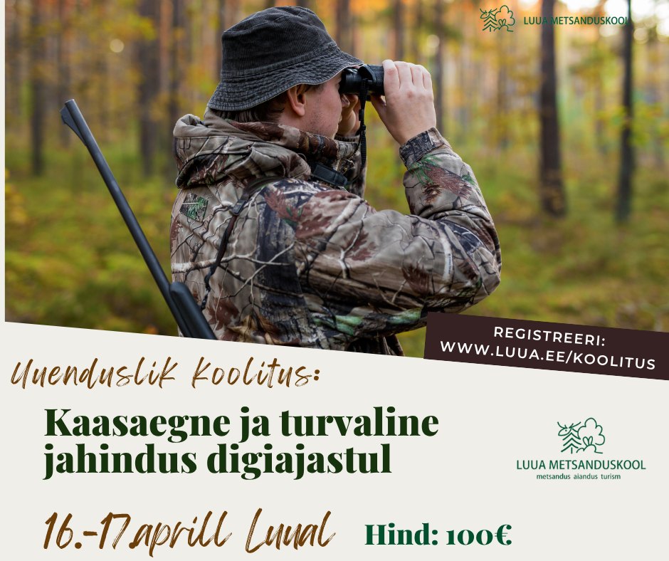 16.-17. aprillil toimub Luua Metsanduskoolis täiendkoolitus “Kaasaegne ja turvaline jahindus digiajastul”.