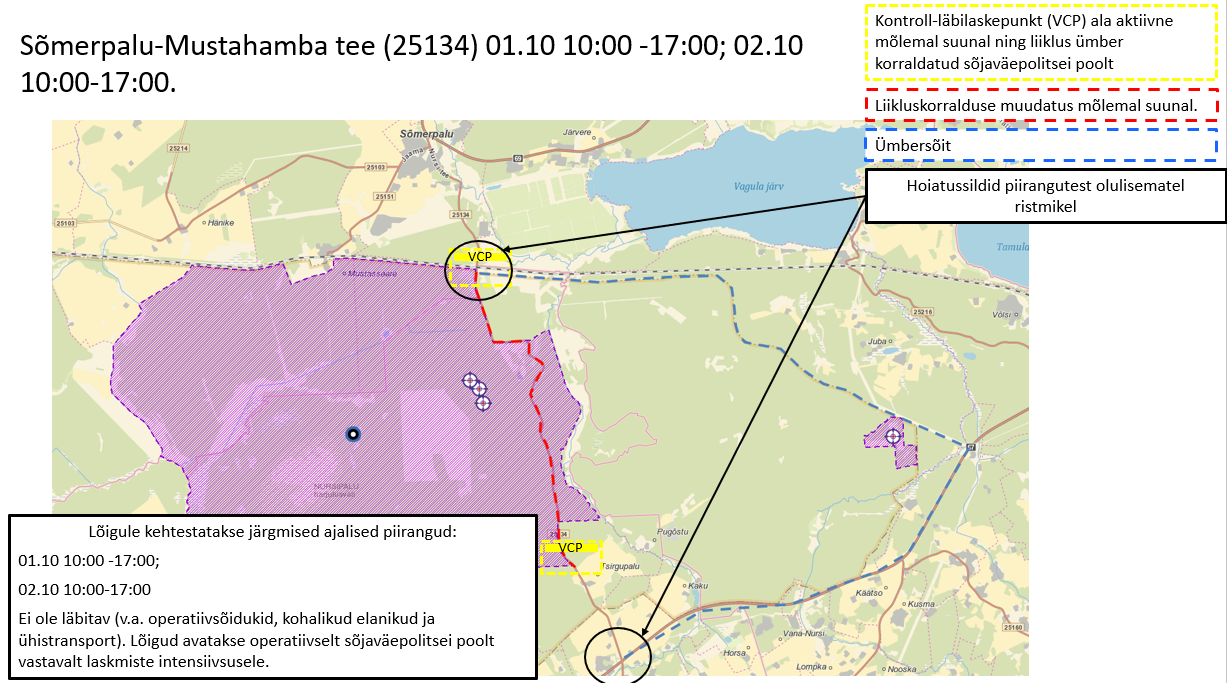 Piirangud: 1. ja 2. oktoobril kella 10:00–17:00 on ohutuse tagamiseks suletud maantee nr 25134 Nursipalu harjutusvälja põhjapiirist Linnupaluni. Kontroll-läbilaskepunktid mehitab Sõjaväepolitsei ning läbipääs on tagatud kohalikele elanikele, ühistranspordile ning operatiivsõidukitele. Täpsem info kajastub Tarktee.ee.