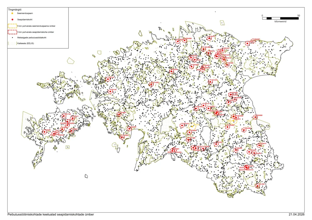Peibutussöötmiskohtade keelualad seapidamiskohtade ümber.