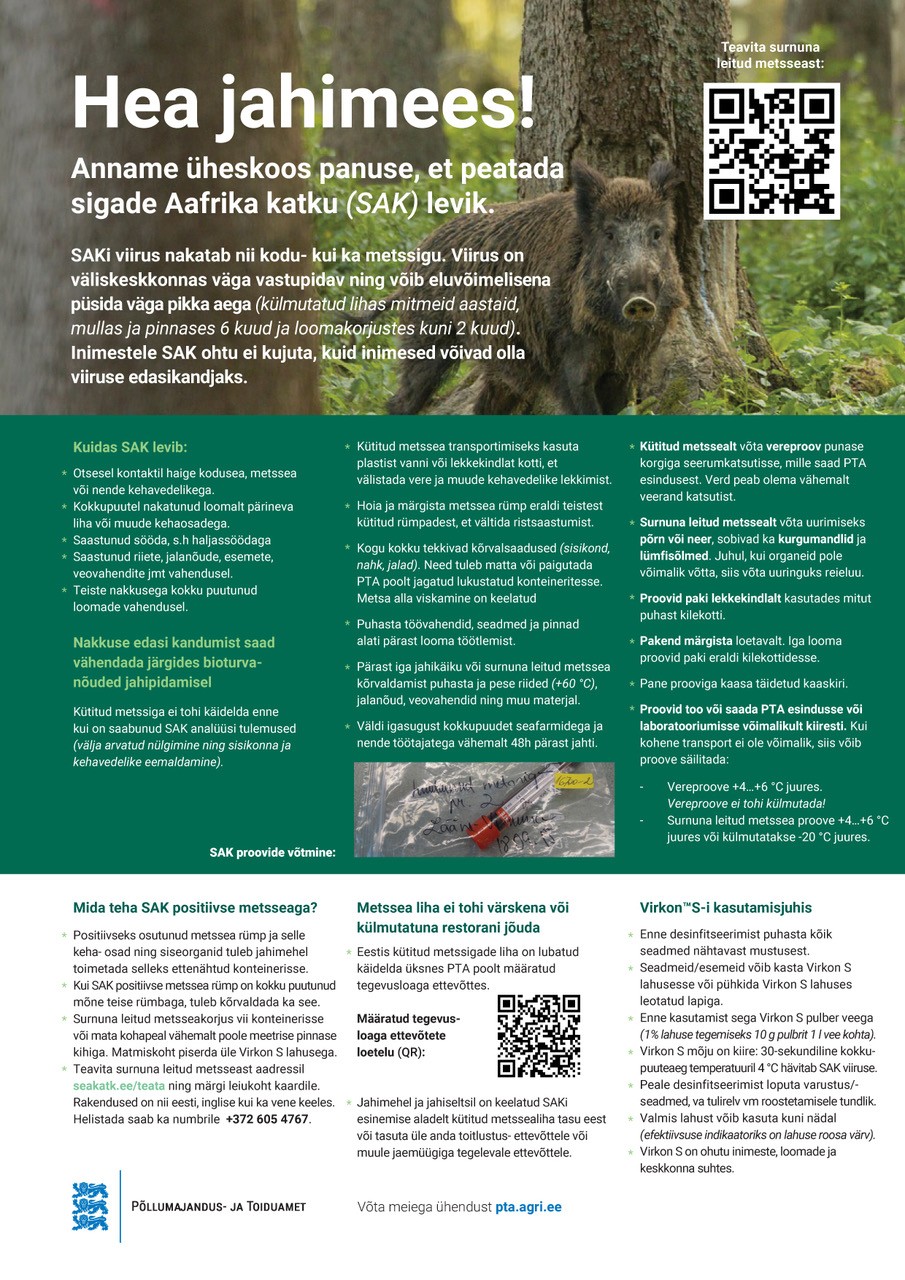 - Trükis Peamised ohutusmeetmed jahimeestele ja juhised desinfitseerimiseks