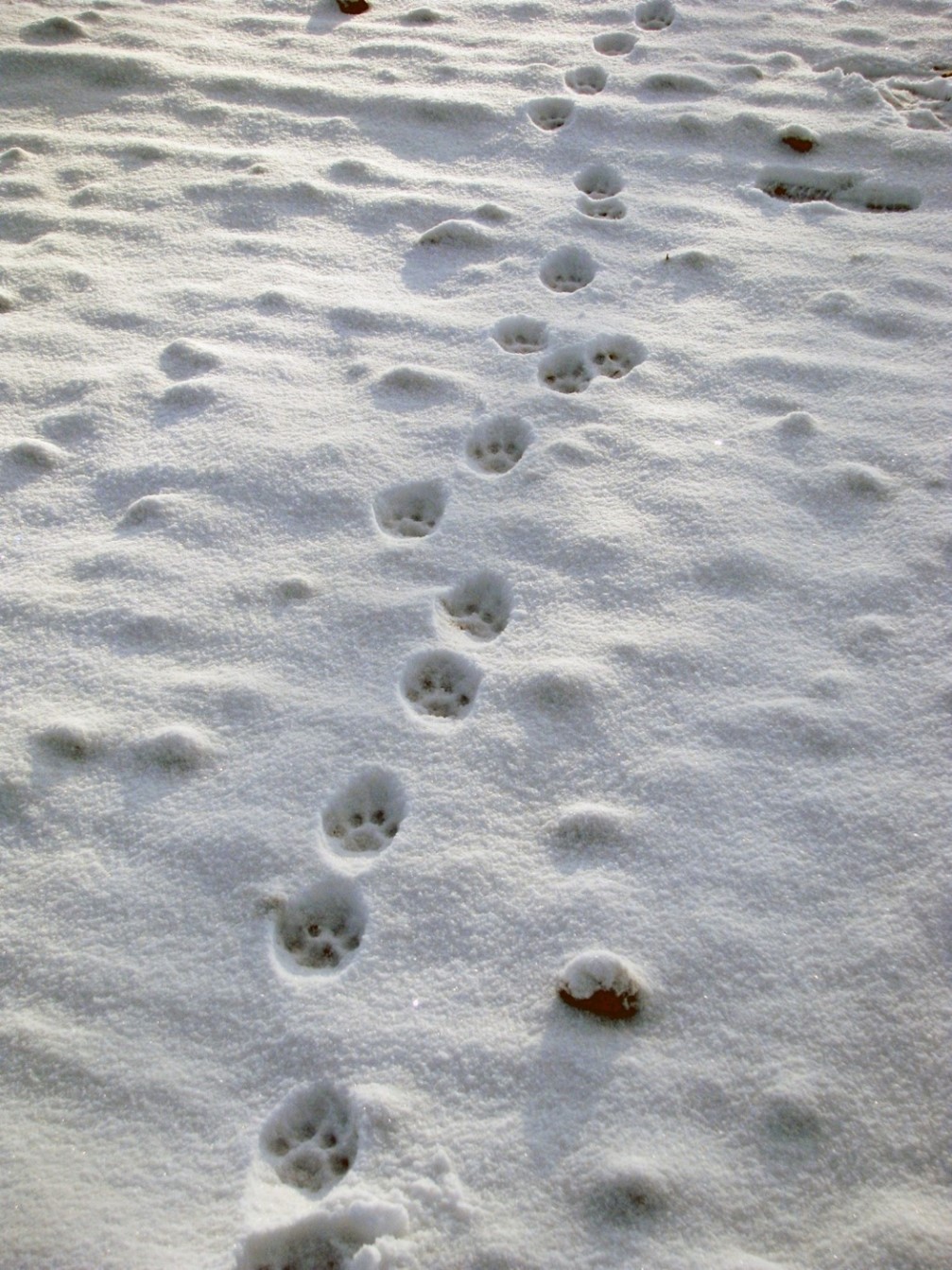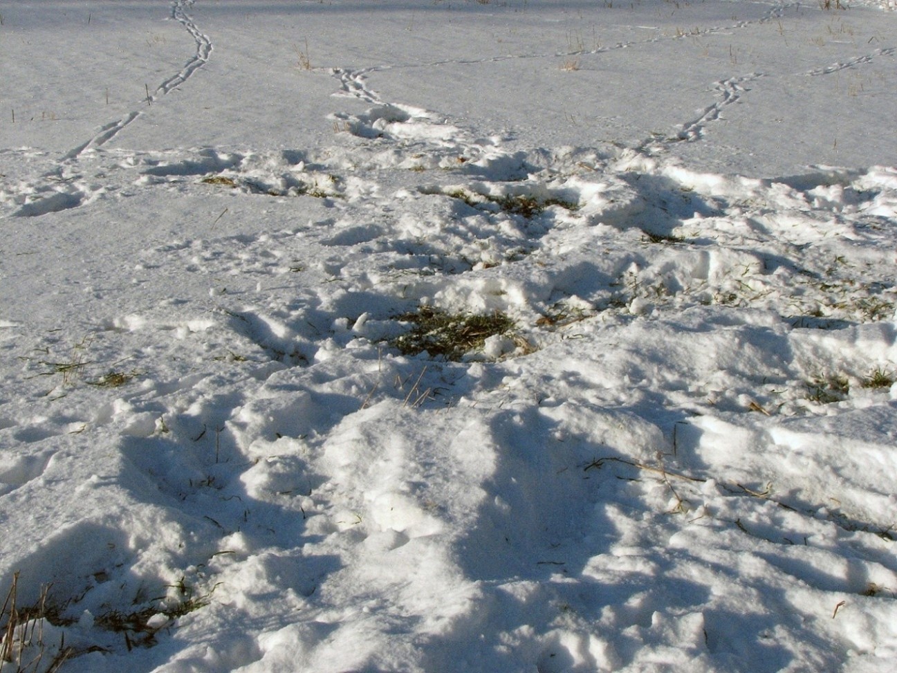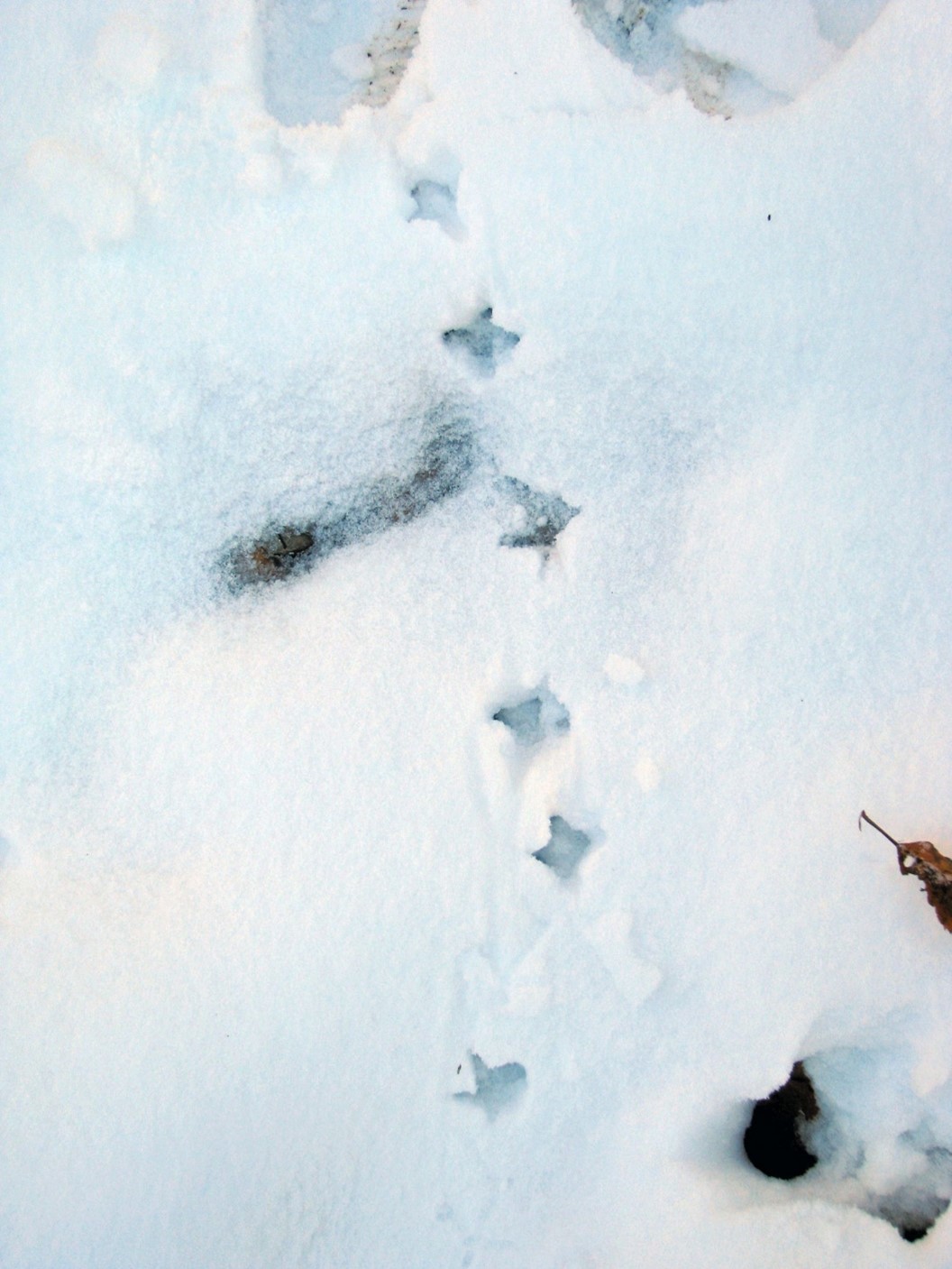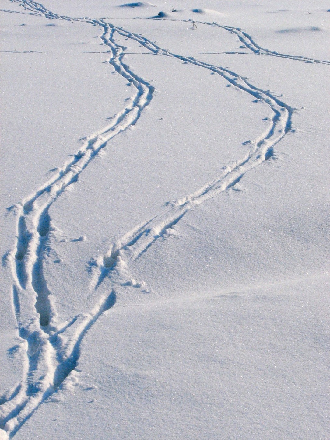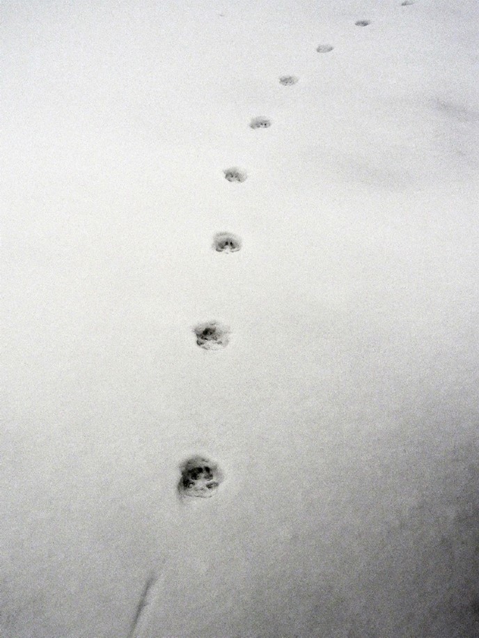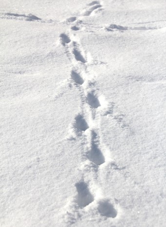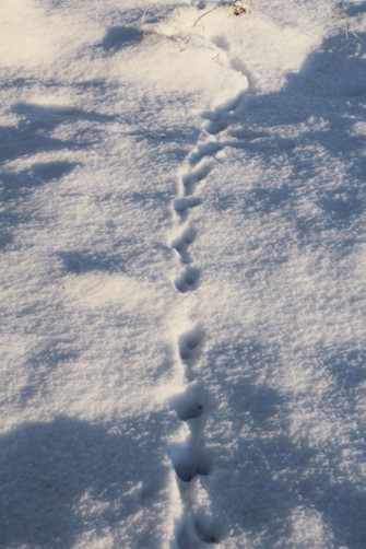 Nirgi jäljerida lumel. Väikesed jäljed, võib segamine ajada tuhkru jälgedega.