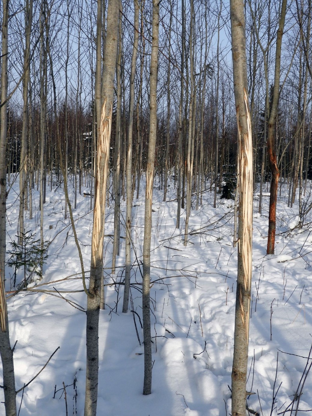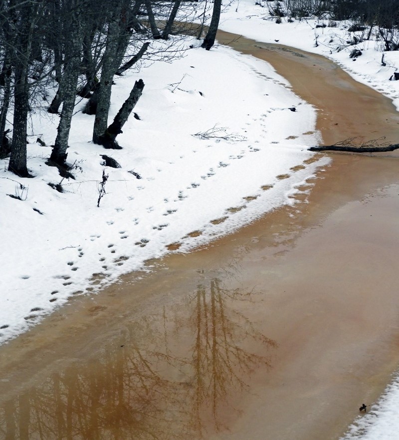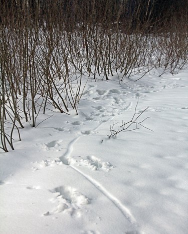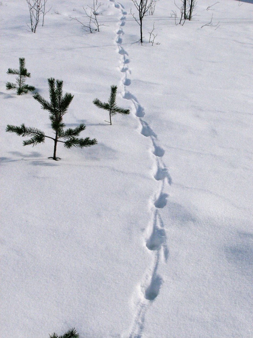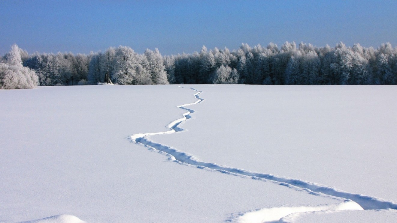 Laanepüü jäljerida kohevas lumes.